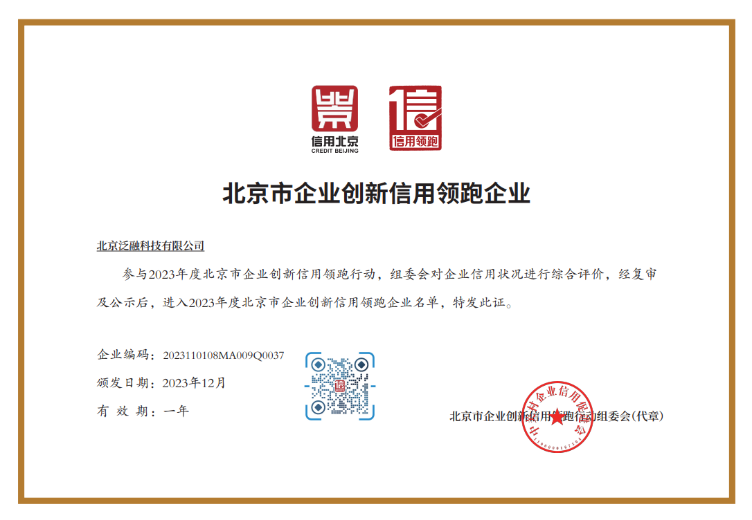 米乐M6(中国)和泛融科技获评2023年度北京市企业创新信用领跑企业